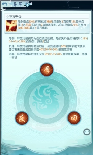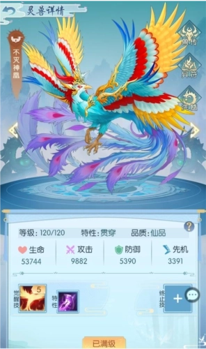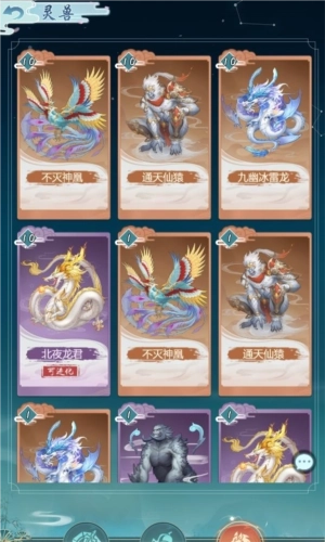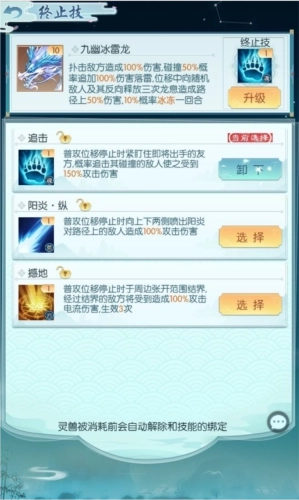 灵兽技能分为觉醒技、终止技、不同的灵兽的觉醒技均不相同,终止技可以自行搭配。