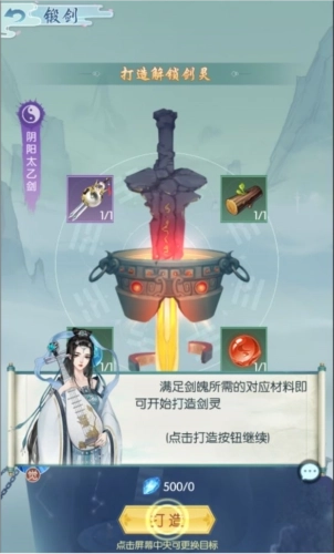 道友可以在洞府中的锻剑功能里,消耗剑魄和锻造材料,获得对应的剑灵。