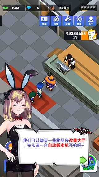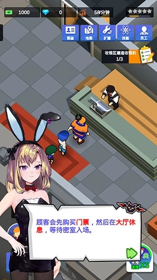 1、进入密室逃脱模拟器这款游戏后,我们会接手一家小小的密室,并且迎来第一波客人。