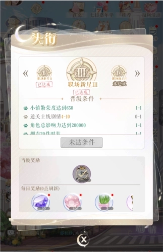 小主需要完成当前头衔任务才可升级头衔,每次升级头衔后都可获得永久晋升奖励,每个头衔等级晋升奖励只能获取一次。