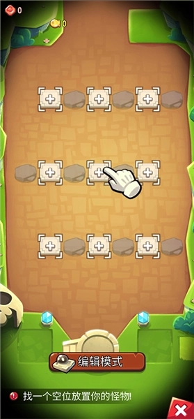 3、召唤完成后,返回初始页面,点击右下角的编辑模式,选中怪兽并将其放置到地图上;