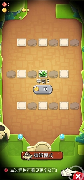 5、金钱可用于给游戏中的绿色怪物升级,点击右下角的编辑按钮即可进行升级操作。