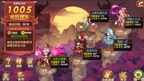 1、统一共分为6阶,1-20、21-30、31-40、41-50、51-55、56级-满级,挑战达到第一名以及达到对应等级后进入下一阶乱斗台