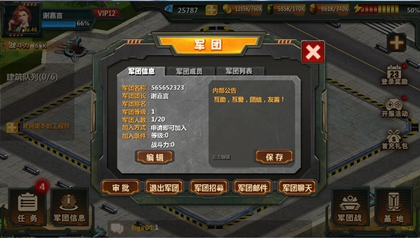 无兄弟不游戏,创建属于你的军团,众志成城,一起将军团发展强大。发展科技,号召兄弟加入战役,炮火连天,战无不胜。打造属于自己的。