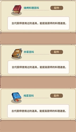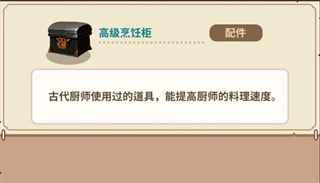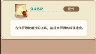 增加烹制双份概率。我个人比较倾向于这个配件,前期因为制作的菜谱比较低级,你看不出它有什么用。但是到了后期,高级菜谱卖的金币高了,消耗的食材也是高级食材,这种增加概率不但可以减少食材消耗,还能增加金币的弹性收益。所以我是比较喜欢这个配件。