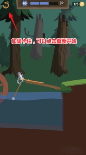3、游戏过程中也可能出现卡住的状况,当无法前进或后退时,可点击左上方的重新开始按钮。若已到达检查点,则会从检查点处复活。