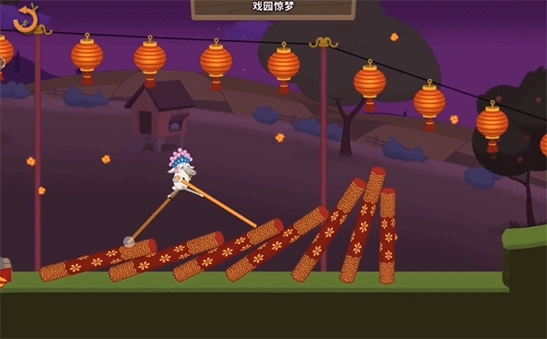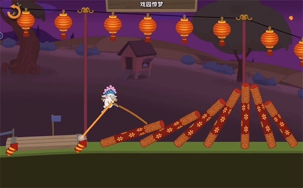 这个游戏要求玩家踩着高跷前行,途中会遇到各种障碍,只要成功抵达终点就算通关。