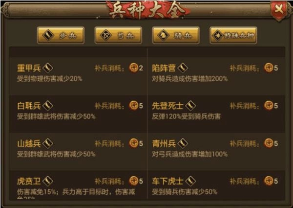 3、点评:强力兵种,特别是刘备和张飞站在前排吸收伤害时,刚刚的。在刘备做为君主有兵力加成的情况,实用性颇高。