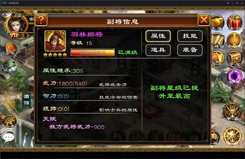 接下来要介绍的是紫将——羽林郎将。羽林郎将升至满星后的属性是为自己的主将增加540点武力,并削弱对方主将900点武力。