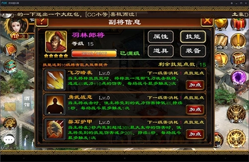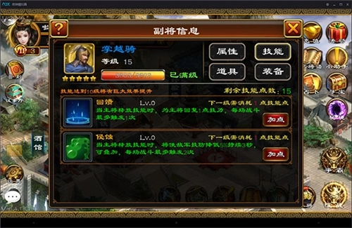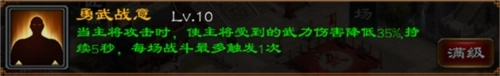 勇武战意,削弱型技能,是削弱型武将的标志技能,但武力这项属性在游戏后期除了关羽和孟获外并不关键,所以削弱武力作用并不大,不推荐把技能点浪费到这个技能上面。