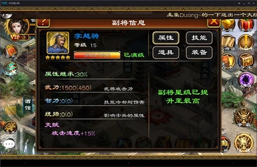 作为一名蓝品质的副将,虽然属性比不上羽林郎将,但技能实用性上完爆啊!但武力属性的副将首推还是杨威将军无疑,如果有多余的资源想要培养第二个武力属性的副将,就培养掌越骑吧!