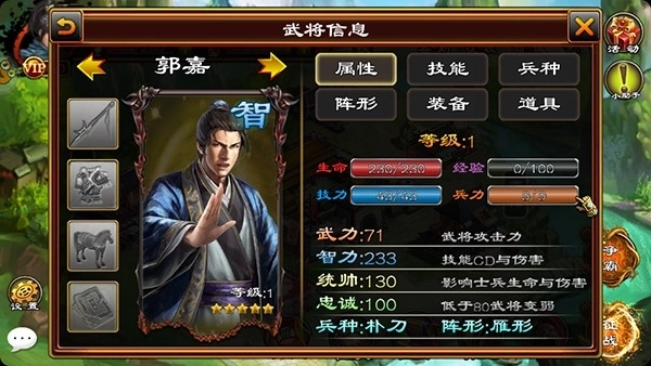 2、小兵无法近身,敌将没有攻击能力,很好用的一个智将