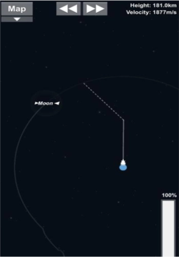 6、获取轨道后,我们需要关闭燃料马力,等待与月球对接。小伙伴可以选择在此时进行加速操作。