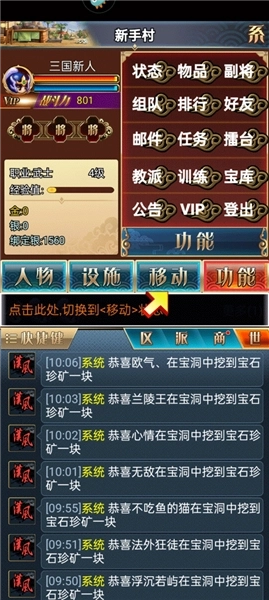 功能键涵盖的内容十分丰富,包含状态、物品、副将、组队、排行、好友、任务、擂台等多种选项。无论是想要组队还是添加好友,都能在此处操作,功能相当全面。
