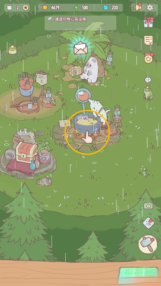 卡通风格的画面,看起来让人感觉十分惬意,美食散发着浓郁的香气,会吸引更多的动物前来。