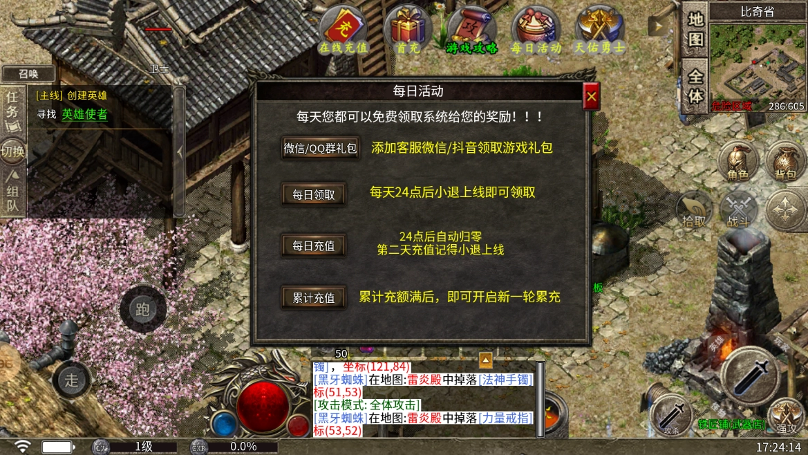 2.福利丰厚,护身戒指、龙皇戒指等极品装备免费赠送,助力玩家快速成型。