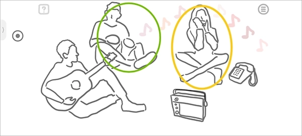在依次点击音响与手机后,最先吹奏口笛的那位小姐姐总共演奏出了7种不同的音符,因此按照1234567的顺序进行排列。