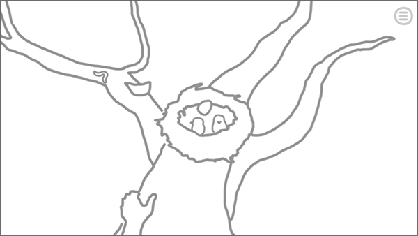 周围分布着树叶,除了未被圈出的那根树枝外,其余树枝上的树叶可以随意点击,直至松鼠出现。