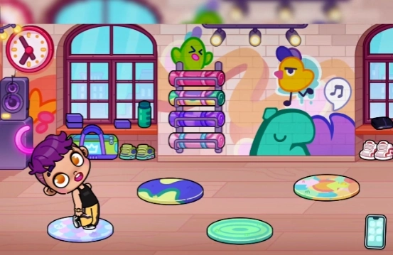 这里面有各种各样的器材可供使用,爱跳舞的小朋友能在这儿练习,部分器材还附带对应的动作示范呢!