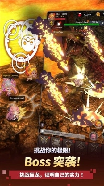 2、会出现大量的boss怪物,你需要收集更多来自异世界的英雄角色,去挑战恶龙。