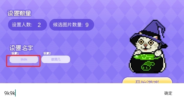 1、进入游戏后,我们先来设置各自的名字,第一个玩家的名字设为“9k9k”,第二个玩家的名字设为“网”。