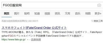 1、首先我们先在搜索引擎是搜“FGO日服”,通常第一项结果便是,然后点击进入页面