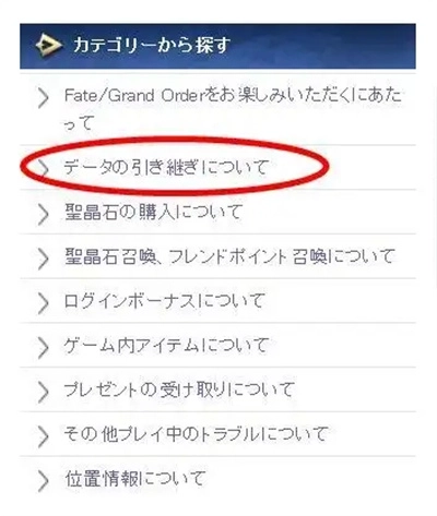 3、在左边一栏中找到第二项“データの引き継ぎについて”也就是关于数据转移,点击
