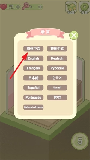 1、启动游戏后,找到并点击设置选项,在设置里能把语言调整为中文。