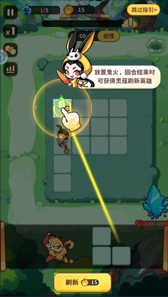 5、放置鬼火,回合结束时可以获得灵蕴刷新英雄。