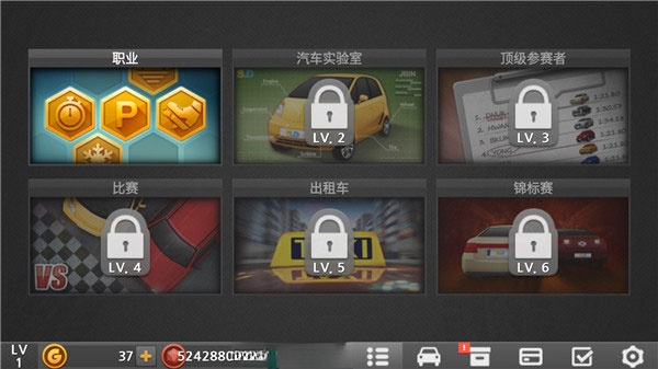 2. 逼真的汽车引擎模拟,完备的驾驶任务,通过完成任务收获金币,进而购买更多汽车。