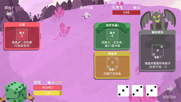 战斗机制采用回合制,玩家在每一个回合里,都要通过掷骰子的方式,来确定本回合可用的行动点数。