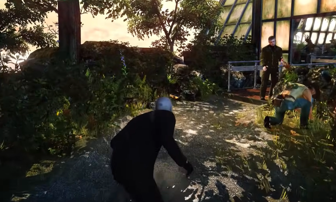 花房外的平台上只有两名敌人。等其中一名守卫走到栏杆旁眺望大海时,从他身后悄悄靠近,要么把他推下去,要么换上他的制服继续行动。之后再用同样的方法解决第二个人。