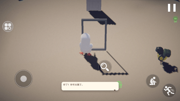 正式进入游戏后,左侧轮盘可用于操控方向,右侧的按钮则包含蹲下、疾跑等功能。