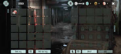 当玩家让箱子停住后,就能点击右下方出现的拾取按钮;要是想一次性把箱子里的东西转移到背包,点击下方的【TAKE ALL】就行。
