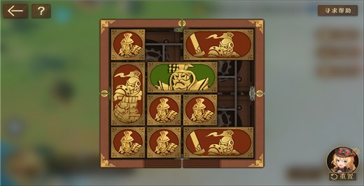 这个玩法是华容道类型的,你需要把指定的绿色方块移动到下方的位置让它出去就行,完成后能得到源核作为奖励。