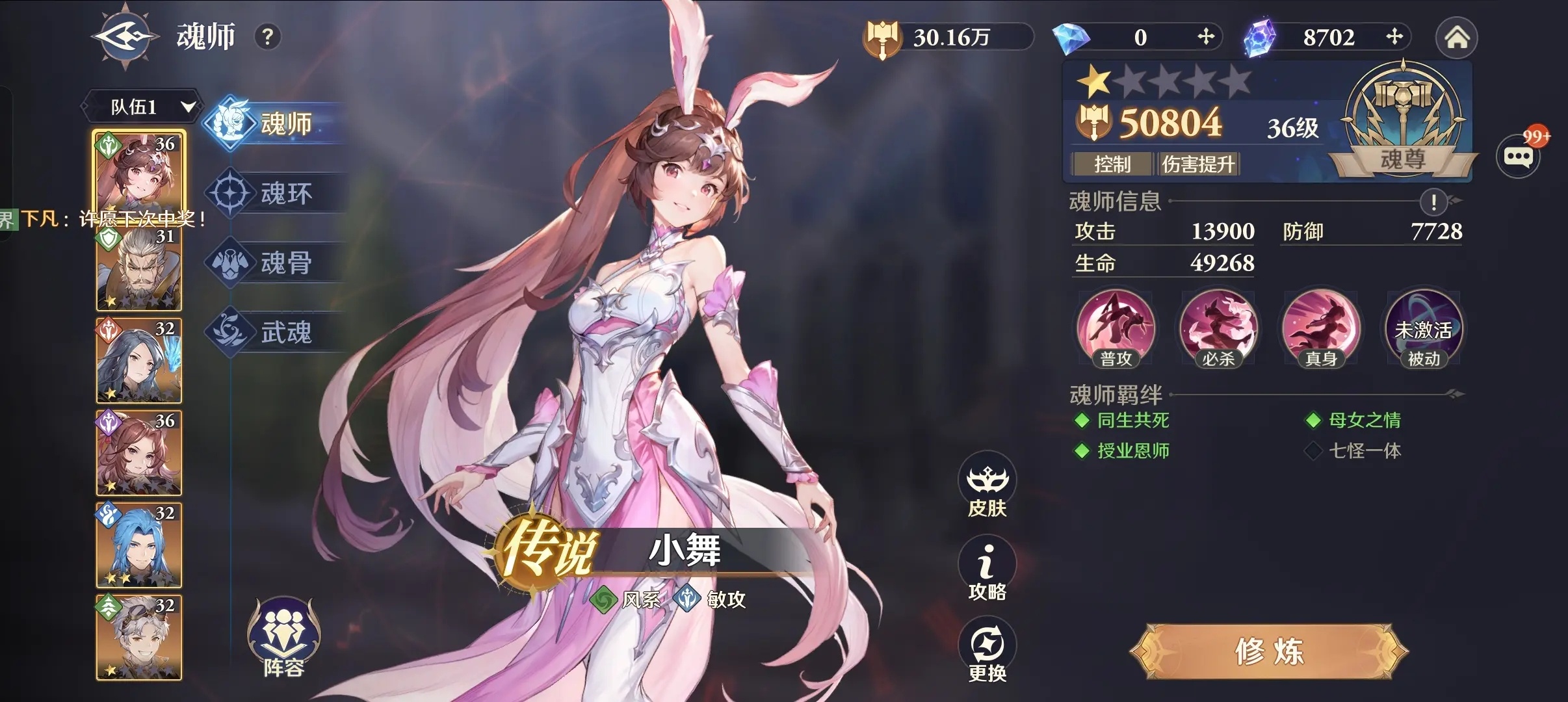 【魂师成长体系】完善的魂师成长体系,玩家能够持续强化魂师的等级、魂力、魂环等各项属性。