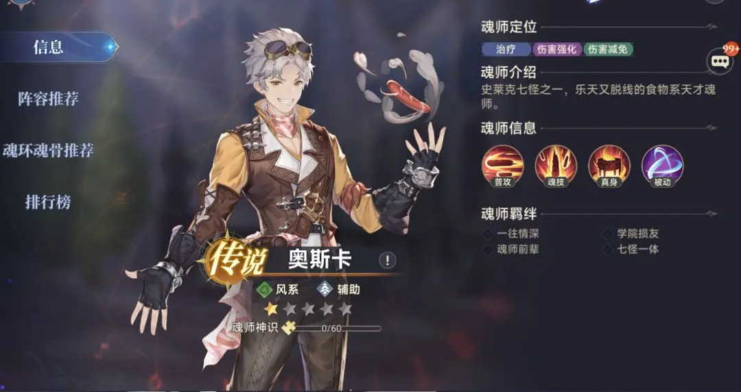 奥斯卡的普攻能为单个魂师恢复生命值,开启武魂真身后还能额外增加伤害减免效果;他的魂技可以给全体队友带来治疗效果和伤害提升加成,这种特性让他很适合在多核输出的阵容里担任辅助角色。当处于武魂真身状态时,奥斯卡还能进一步为队伍增添普攻伤害,因此他是连击队中不可或缺的奶妈。