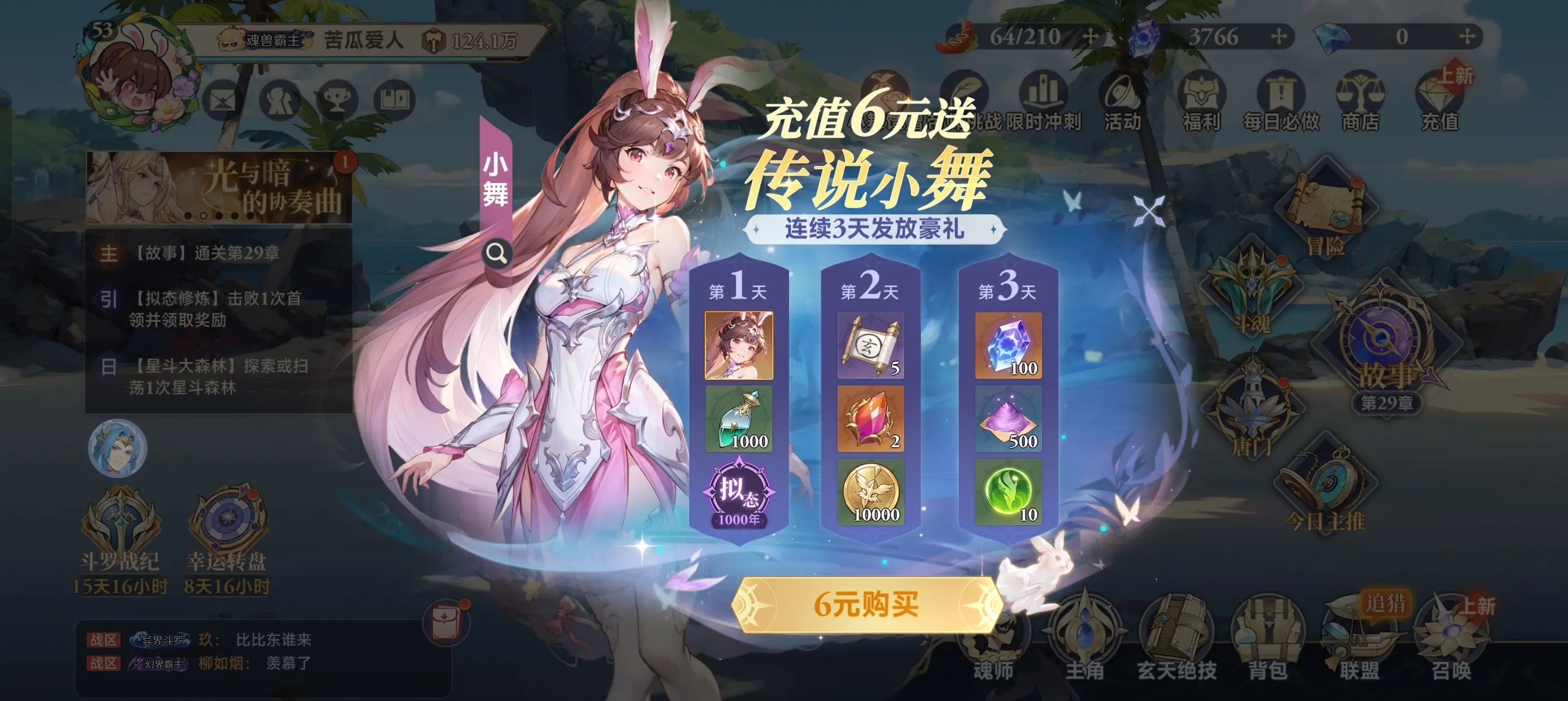 小舞能通过首充获取,进入武魂真身状态后,无论是进行行动还是魂技触发暴击,都能附加追加攻击效果,从而造成额外的单体伤害。她的魂技不仅具备高额的单体倍率,还拥有暴击率加成,在游戏初期就能打出大量伤害。即便卡池抽卡运气不好,只要拥有小舞,也能轻松完成开荒阶段的挑战。