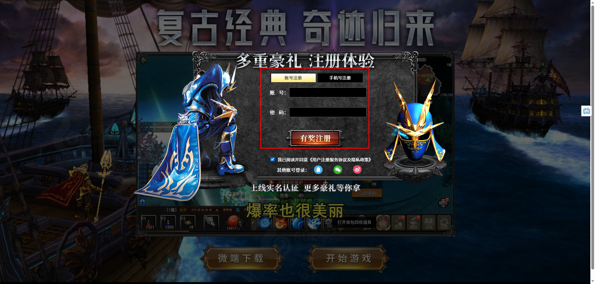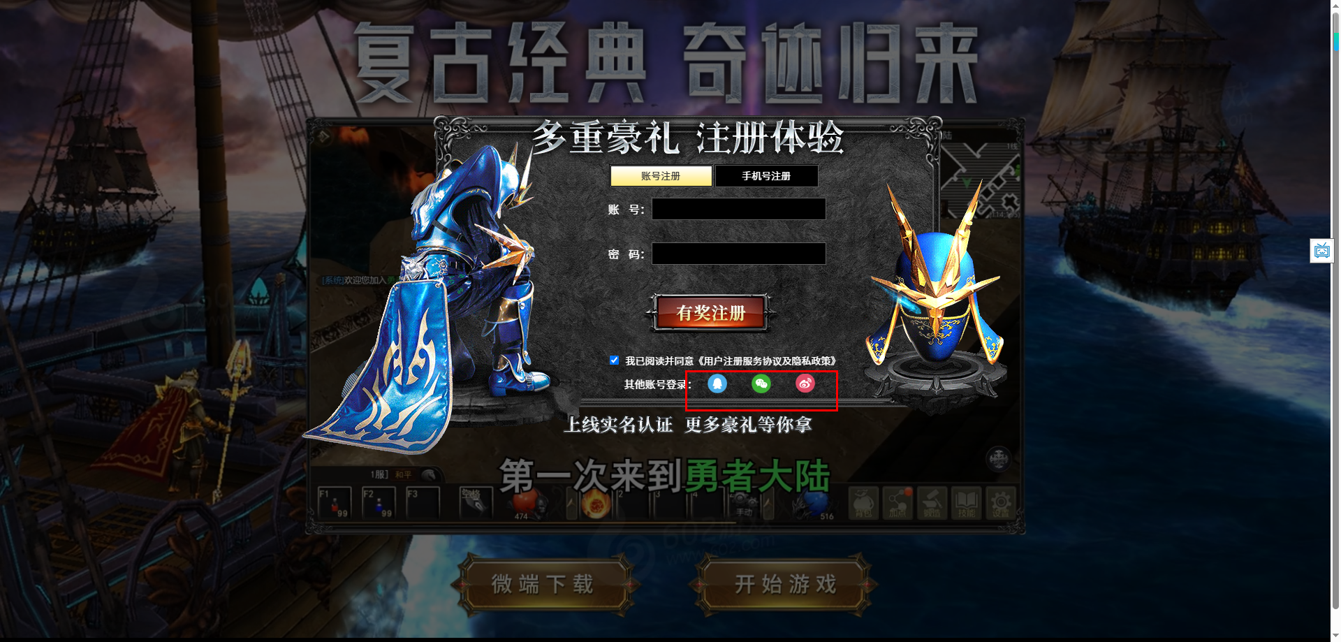 我们打开游戏界面就能看到登录按钮,你可以自定义账号密码进行注册,也可以使用手机号注册