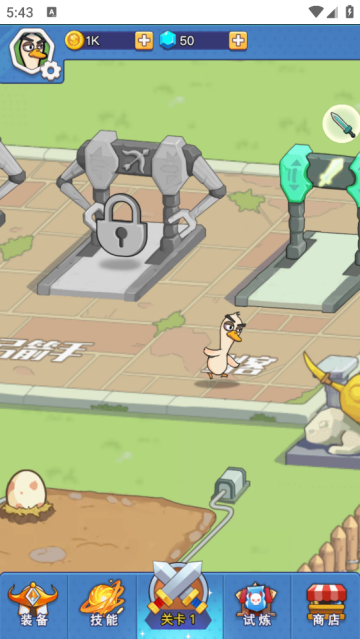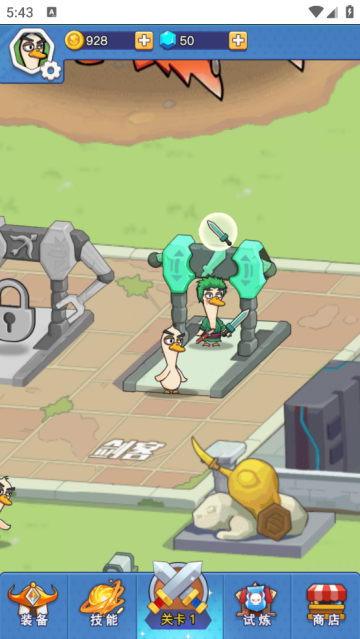 3、极具卡通风格的游戏题材,主角设定为大鹅,玩家需操控它击退来袭的怪物。