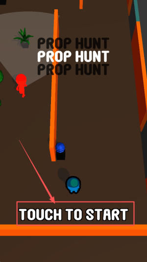 启动游戏的操作如下:在PROP HUNT界面中,点击“TOUCH TO START”即可开始游戏。