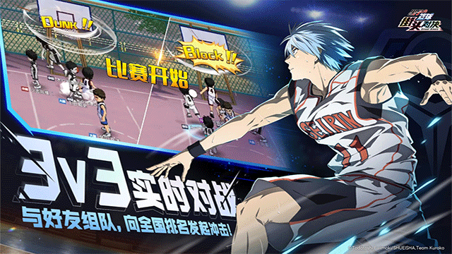 《黑子的篮球》街头对决是一款正版授权的3v3实时体育竞技篮球游戏,精准还原了日本超人气动漫《黑子的篮球》中热血澎湃的世界观设定。