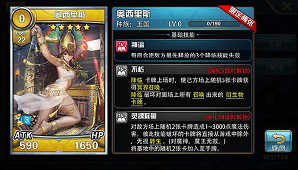 其实确实没什么特别好说的,作为奥西里斯的副卡,不灭孽骨登场就能带来1960点的攻击力加成,这数值足以直接秒杀大部分没有额外增益的卡牌;而它1冷却时间的涅槃技能,搭配上高达2000点伤害的自爆效果,既能确保自身的生存续航,又能高效地压低对手的生命值。