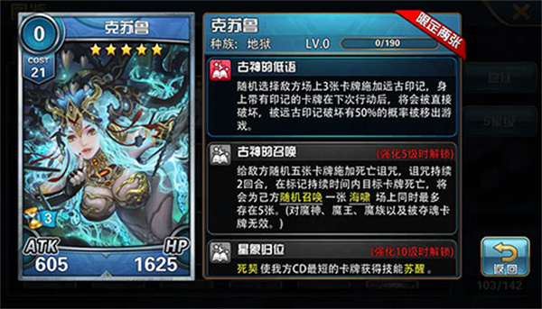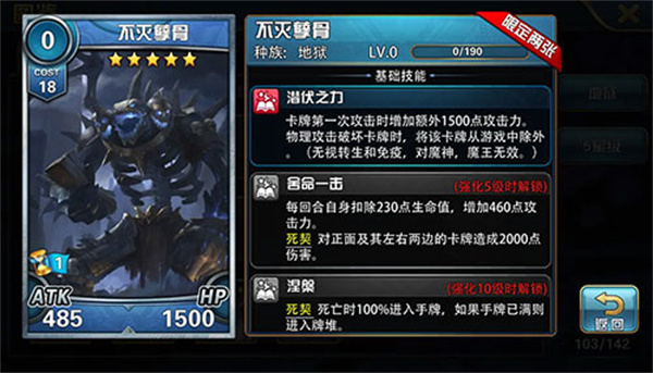 不过与此同时,它也会面临绝大多数物理类型卡牌都难以避开的问题。尽管初始攻击数值高达三千以上,可它自身并没有任何能够破除防御的技能,空有一身高额伤害却很难将其有效打出来。面对带有不屈特性的目标时会显得十分吃力,也没办法对加成很高的战斗环境形成有效克制,召唤物和魔族单位同样是它相当棘手的难题。在当前这样的大环境背景下,它确实很难充分发挥出自身的实力。