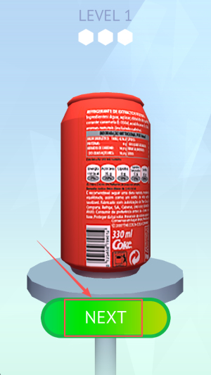 完成操作:在LEVEL1的330ml Coke界面中点击NEXT按钮,就能顺利通关并进入下一关。