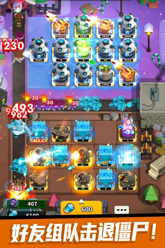 僵尸风暴安卓版这款策略塔防游戏,精准击中了烧脑爱好者的喜好!科技感的卡通画风下,藏着丰富的策略玩法,从基础炮台到未来飞船,数十种灵塔各有独特技能——分裂装置搭配魔镜可快速积累灵塔,仿生蛇能削弱敌方战力,反应堆更是百搭的核心装备。战斗时需先铺满灵塔再进行合成,相同点数的灵塔能合成随机高阶灵塔,而在Boss来袭前释放技能积攒SP的细节,往往直接左右战局走向。游戏不仅有PVP竞技模式,玩家可互相投掷僵尸对抗;还有PVE合作模式,能与队友携手抵御尸潮;随机竞技场则让玩家公平比拼运气与策略。