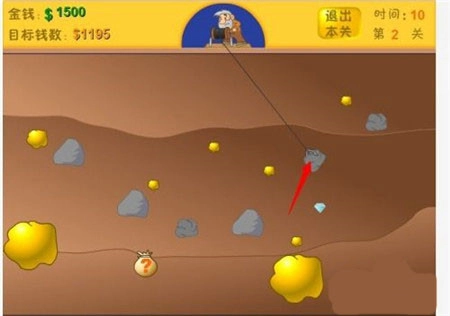 土地下面的所有东西都能抓取到。随着关卡不断推进,会出现钻石之类的贵重物品。石头当然也可以抓住,但这纯粹是浪费时间。