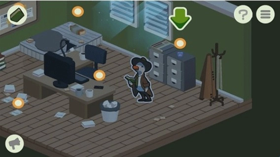 游戏中的嫌疑人全程配有语音,玩家需用不同音调的鸭叫与他们互动:高音调传递怀疑,低音调表达共情,若音调选择错误,可能会触发滑稽的跑偏剧情。通过对话追问矛盾之处,记录角色的动机与关键信息,为后续推理埋下伏笔。
