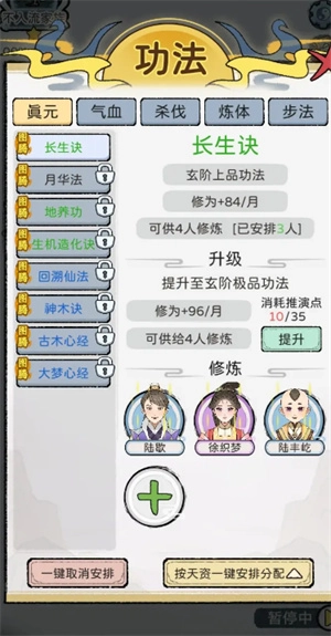 修为在三岁时就能进行药浴浸泡,通过这种方式最多可提升100点天资;天资提升后,修为也会随之增长。生命和攻击力则都能够通过修炼功法来获取。