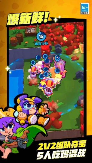 游戏整体操作难度偏低,简单易上手。在5v5的对局里,玩家需要收集宝石来赢得胜利;对决过程中还能收集金币,前往宝箱区域开启宝箱获取角色。此外,超级道具的加入让游戏乐趣瞬间提升。